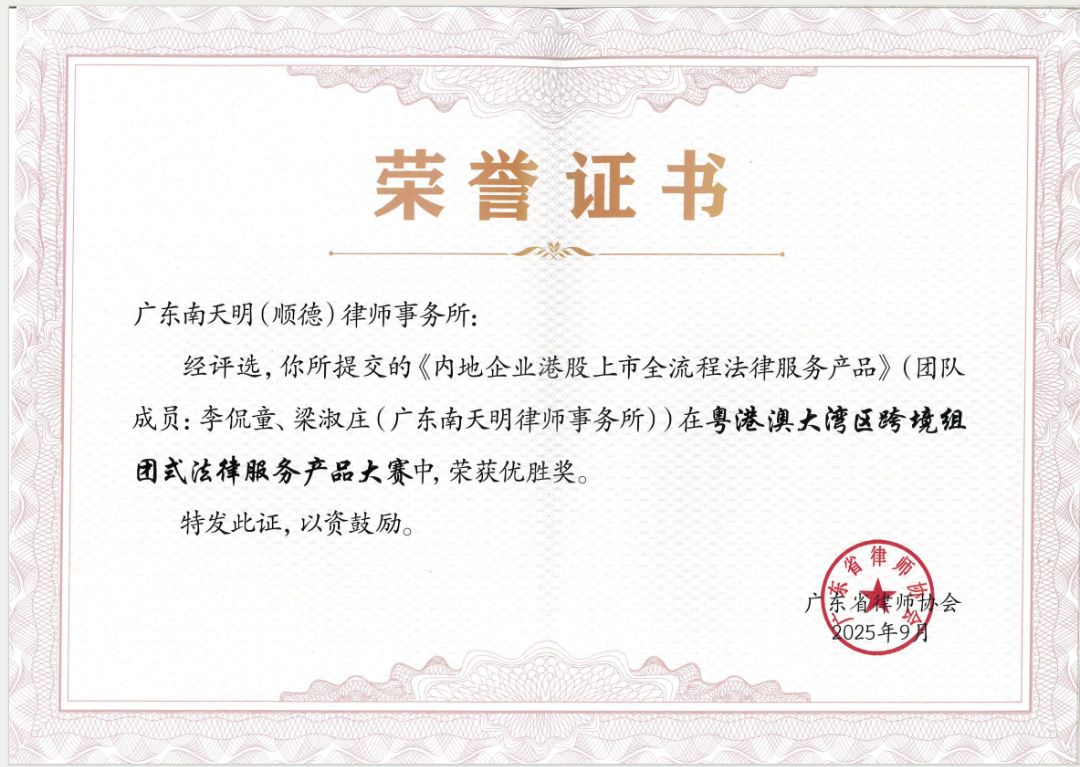 在粤港澳大湾区跨境组团式法律服务产品大赛中荣获优胜奖