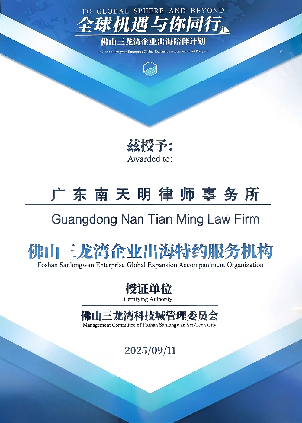 首批“佛山三龙湾企业出海特约服务机构”